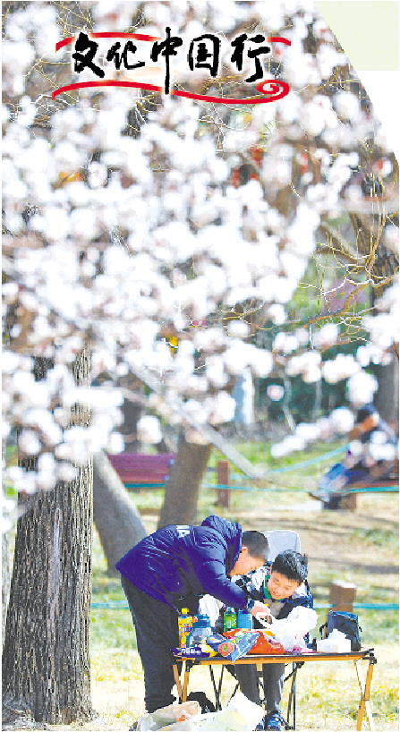 3月16日,游客在濟南千佛山賞花游玩。(□新華社發)