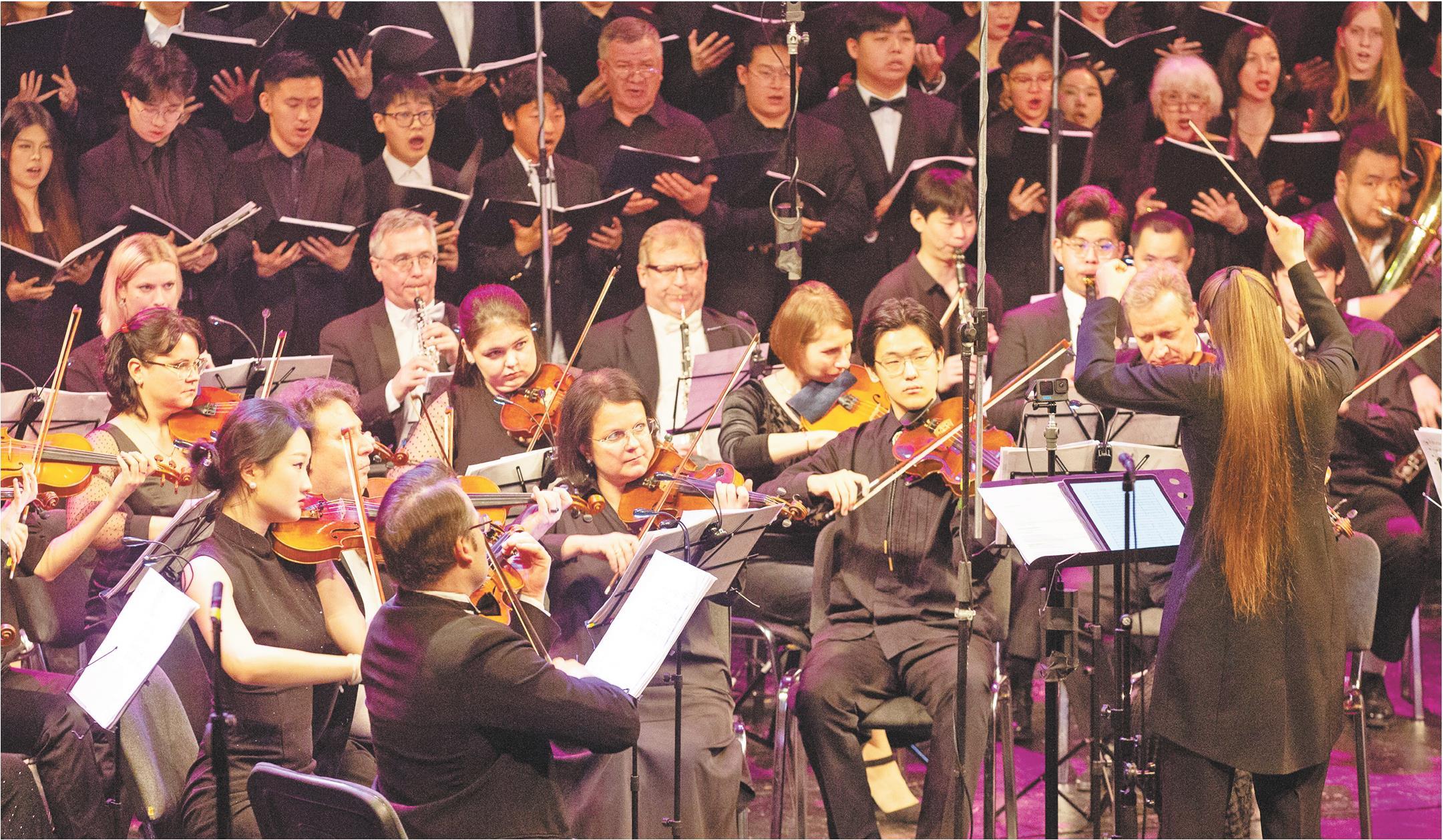 4月25日,中俄音樂家在俄羅斯圣彼得堡舉行的“永恒的懷念”音樂會上表演,紀念二戰勝利80周年。(□新華社發)