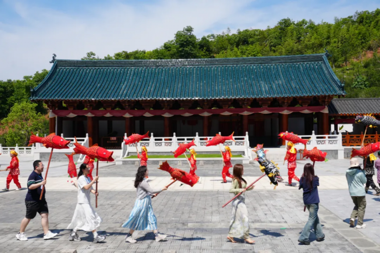 專項研究生們還深度體驗了豐富多彩的文化實踐活動。在朱子后人的悉心指導下,親手參與非遺巖茶制作的全過程,從搖青、揉捻到炭焙,每一個環節都讓學子們切身感受到“大紅袍”獨特的巖骨花香。走進朱熹生活五十載的五夫古鎮,學子們觀賞了傳承千年的非遺龍魚戲表演,鯉魚躍龍門的靈動演繹再現了辛棄疾筆下“一夜魚龍舞”的壯美意境。這一融合古閩越圖騰與理學教化思想的民俗表演,通過龍鯉斗烏龍的精彩劇情,生動展現了朱子文化對民間藝術的深遠影響。在全新升級的5D水舞臺劇場,研究生們沉浸式體驗了《月映武夷》詩劇演出,水幕中摩崖石刻幻化星雨,建盞茶湯倒映九曲清波,以震撼的視聽效果呈現了理學宗師與武夷山水跨越時空的靈魂對話。