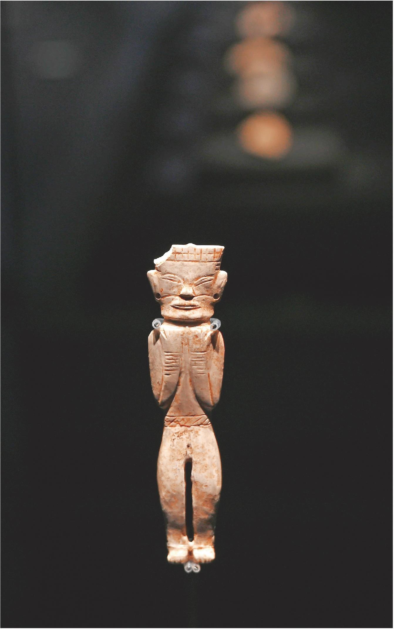這是凌家灘遺址博物館展出的玉立姿人(5月16日攝)。(□新華社發)
