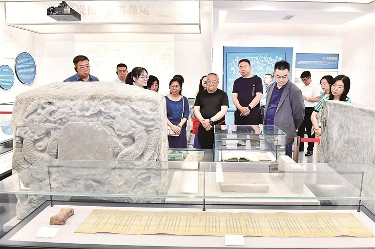 作為溝通中國統一多民族國家浩瀚版圖的水路命脈,中國大運河已成為中國的“活態文化遺產長廊”。如今,其申遺成功已經進入新的十年,運河兩岸各地繼續在保護、傳承、利用上下功夫,讓古老大運河煥發時代新風貌。圖為近日,人們在元明清司運治運最高管理機構——位于山東濟寧的河道總督署遺址公園展館參觀,了解感悟古人的智慧與擔當。 新華社記者 郭緒雷 攝