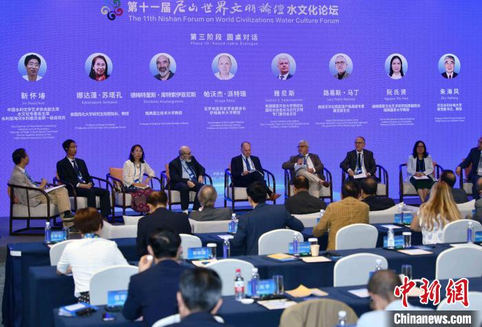 7月10日,第十一屆尼山世界文明論壇水文化論壇在山東曲阜尼山舉行。圖為中外嘉賓同臺交流。沙見龍 攝