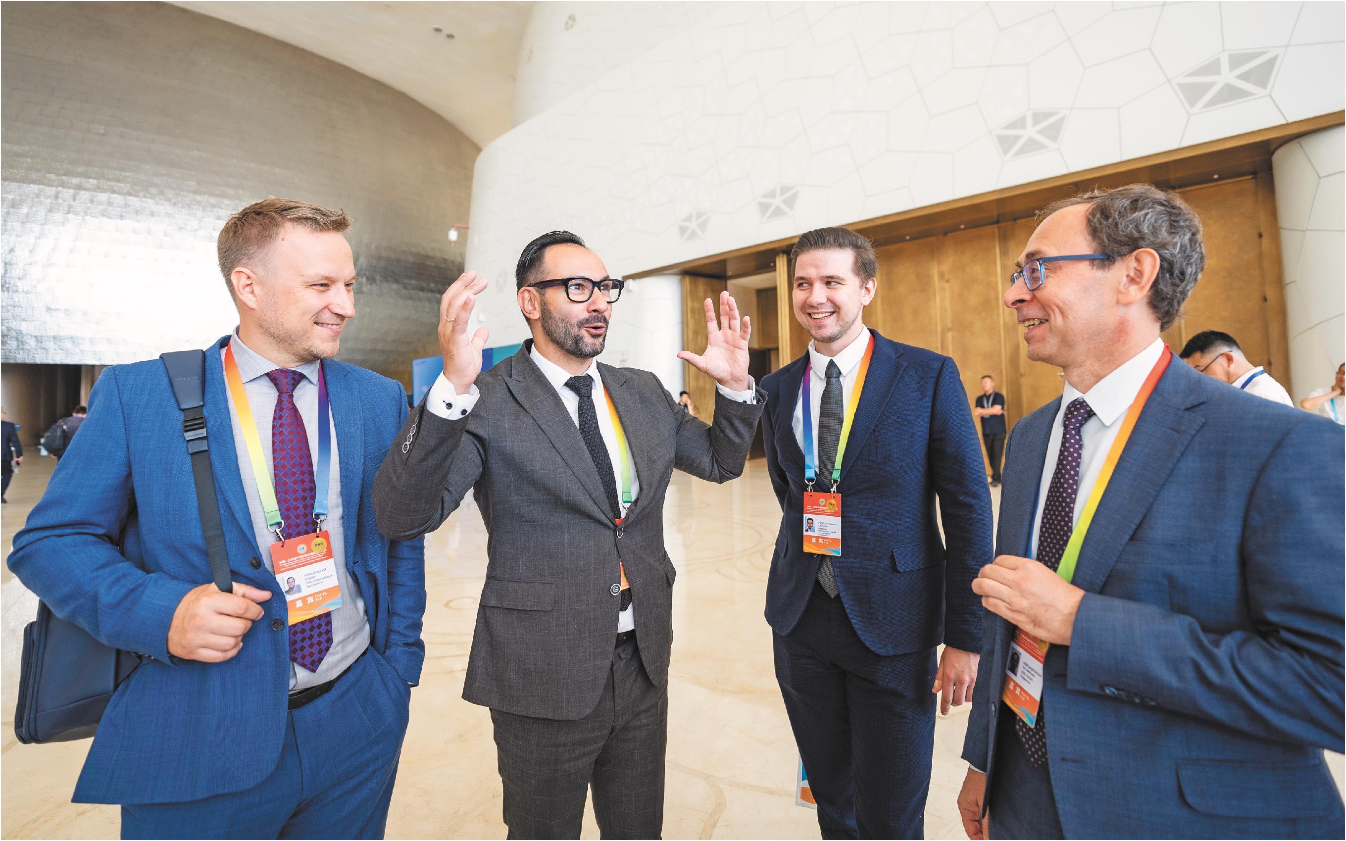 幾位來自俄羅斯的外賓在上合之珠大廳暢談。