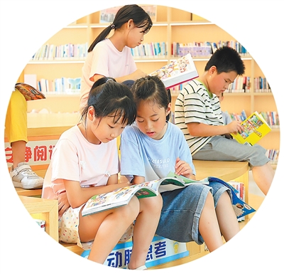 浙江金華婺城區白龍橋鎮金奧社區,小朋友們在職工書屋看書。潘秋亞攝(人民視覺)