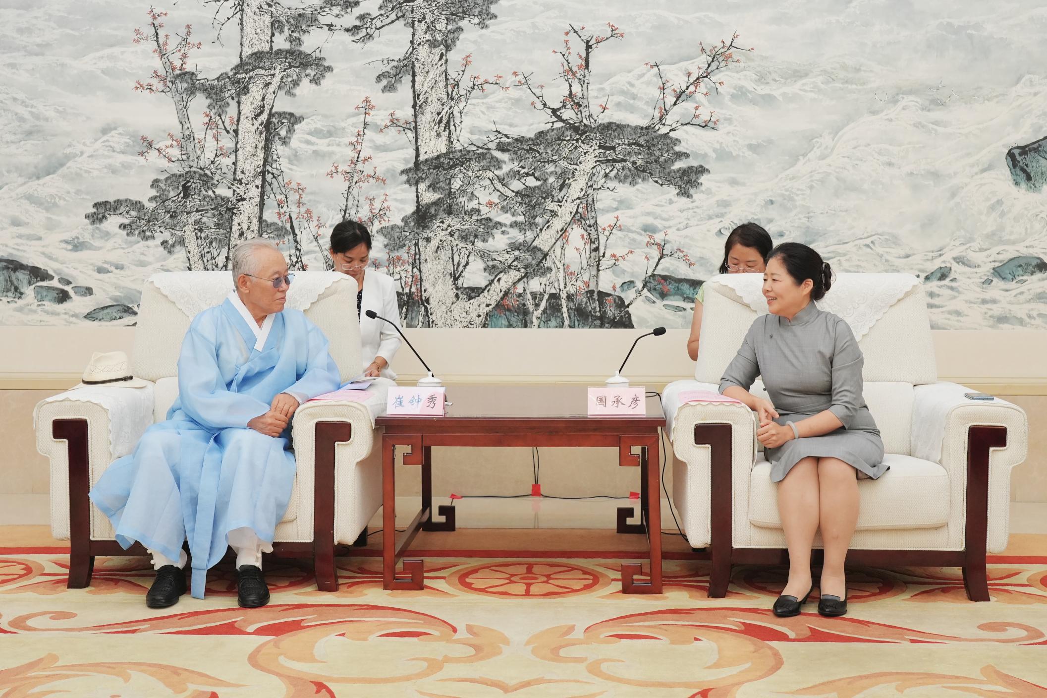 8月25日,尼山世界儒學中心(中國孔子基金會秘書處)黨委書記、副主任,中國孔子基金會副理事長、秘書長,國際儒學聯合會副理事長國承彥在濟南會見韓國成均館館長崔鐘秀一行。雙方圍繞挖掘儒家思想的時代價值、拓展國際化傳播路徑、深化中韓文明交流互鑒等事宜進行深入交流。