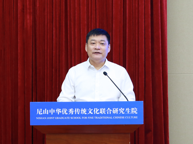 8月28日,尼山中華優秀傳統文化聯合研究生院2025級專項研究生集中研修活動總結會議在山東鄒城舉行??鬃友芯吭狐h委副書記、院長孔德立致辭。