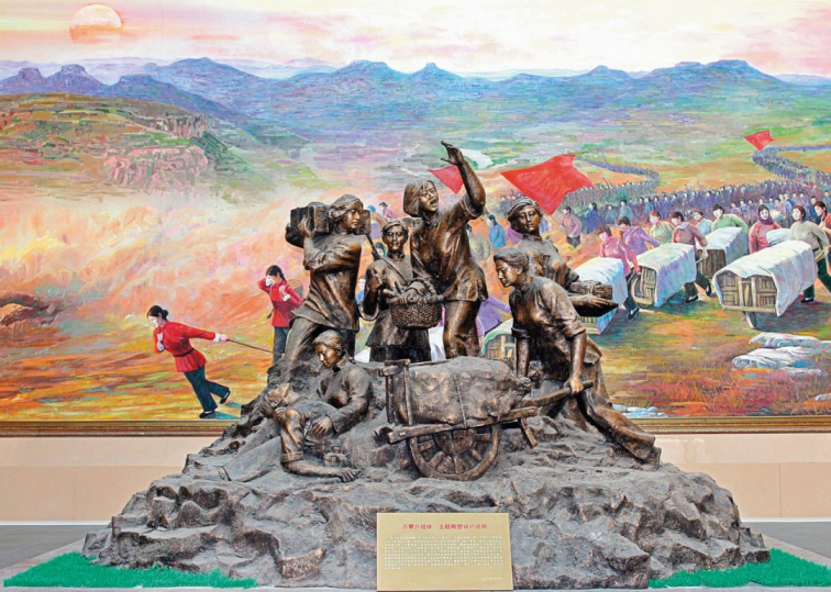 哪里有侵略,哪里就有反抗?!白詈笠话衙祝脕碜鲕娂Z;最后一尺布,用來做軍裝;最后的老棉被,蓋在擔架上;最后的親骨肉,含淚送戰場?!痹谝拭蛇@片紅色土地上,婦女頂起半邊天,沂蒙六姐妹、沂蒙母親、沂蒙紅嫂……每一位巾幗都可歌可泣,每一個故事都感人至深。