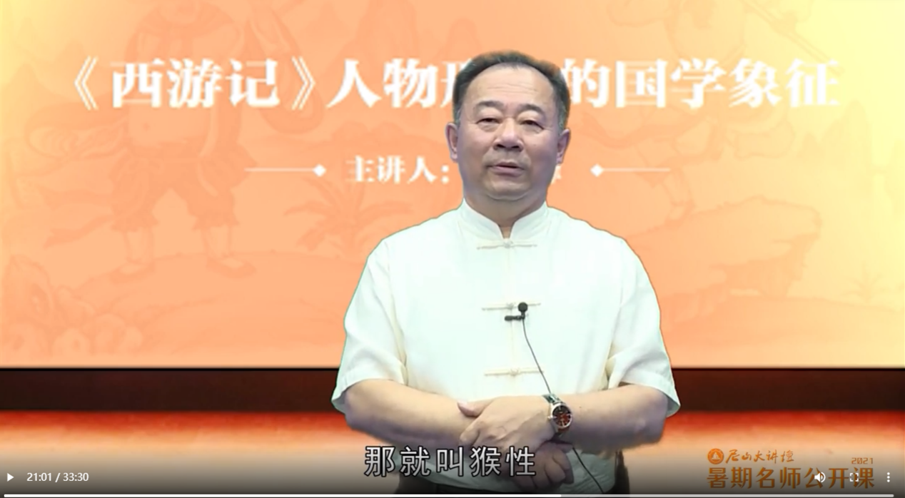 “一部《西游記》,文以載道。用師徒四人一個個的藝術形象,反映著中國文化中修身、正心、誠意、戒性、和情?!?月14日上午,長春大學國學研究發展中心主任、教授金海峰以“《西游記》人物形象的國學象征”為題,開講尼山大講壇·2021暑期名師公開課第六講。