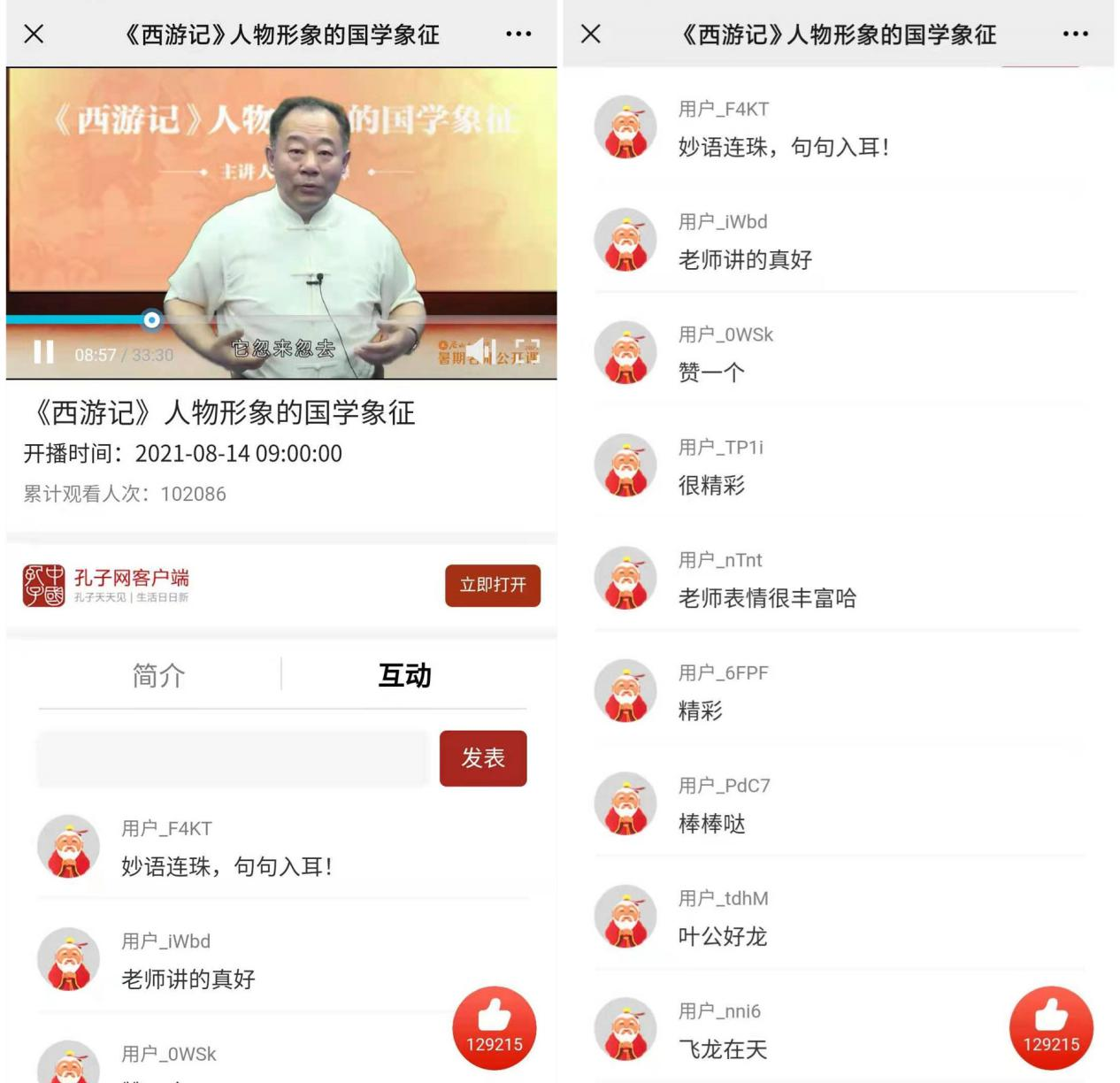 中國孔子網直播平臺網友互動留言